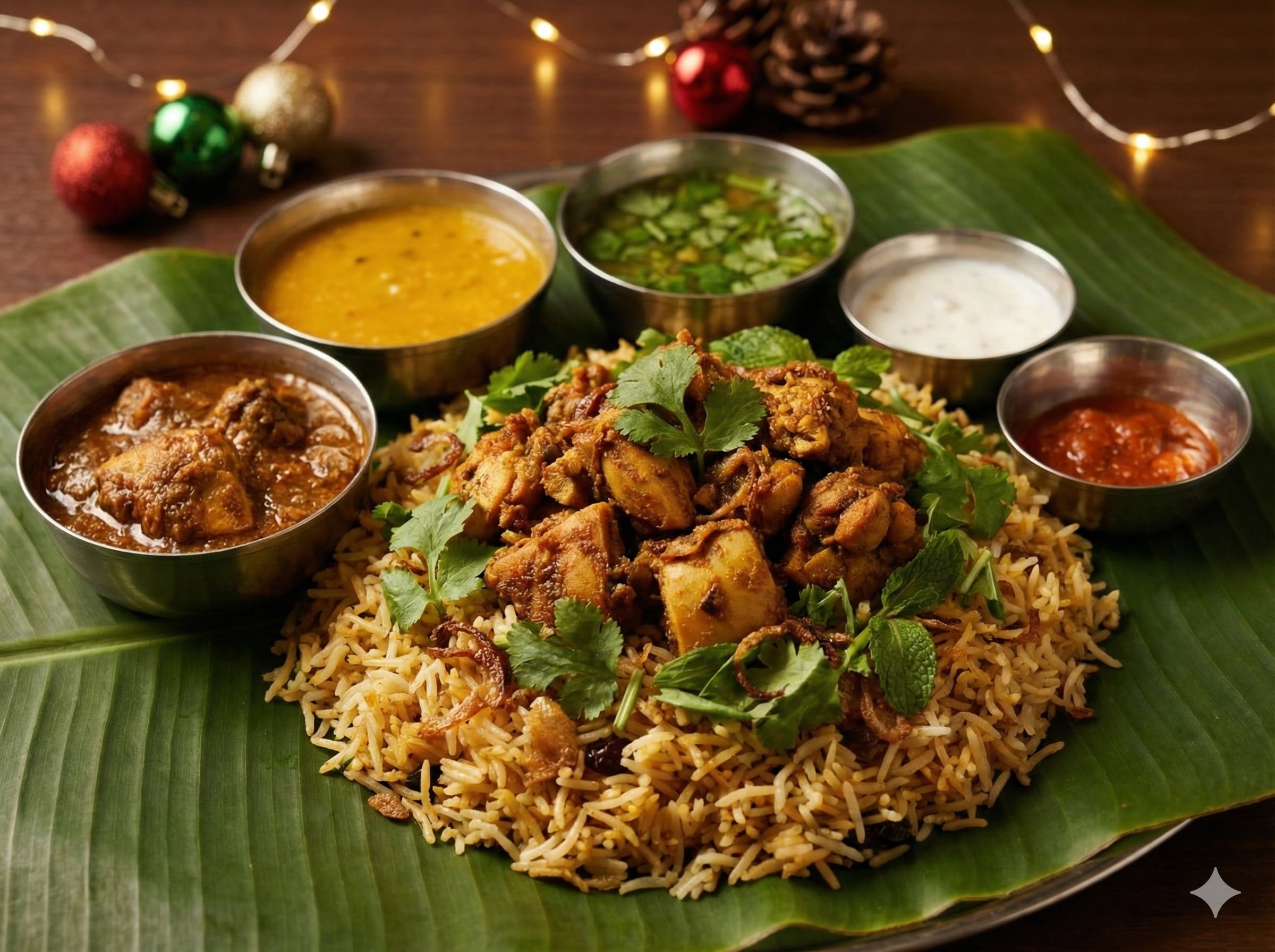 クリスマスの特別なひとときを彩る、豪華なセットが登場です!数量限定のこのセットには、さまざまなチキンの部位を贅沢に使用したクリスマス限定のスパイシーなビリヤ二と、心温まるおまかせバナナ包み弁当が含まれています✨